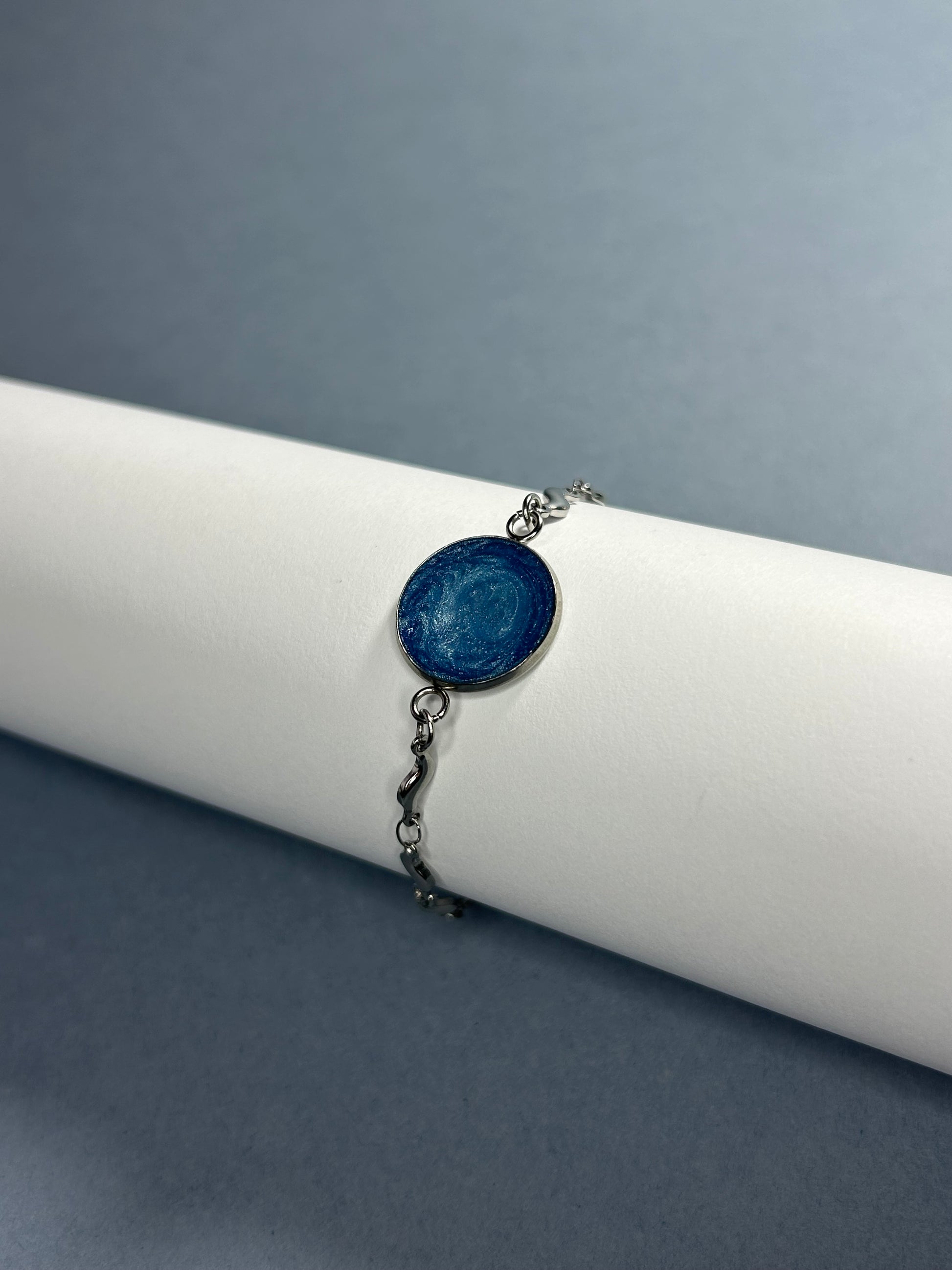 Pulseira ajustável em aço inoxidável , com pingente em azul brilhante