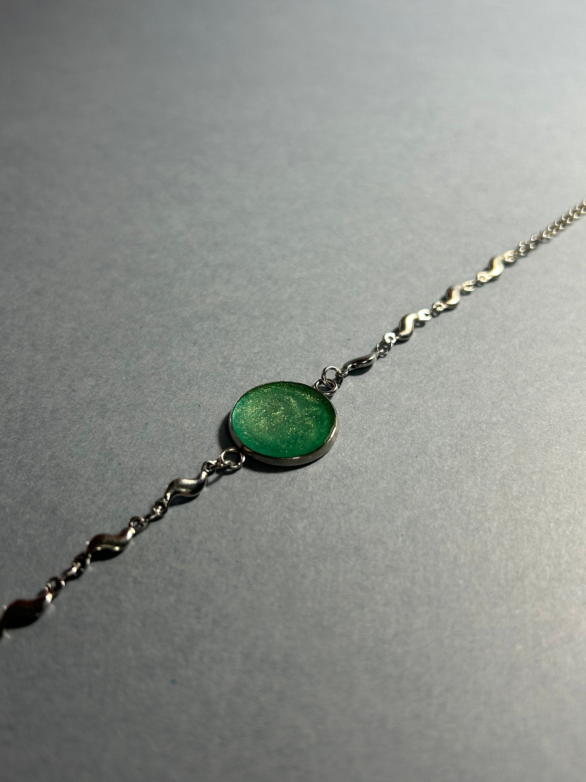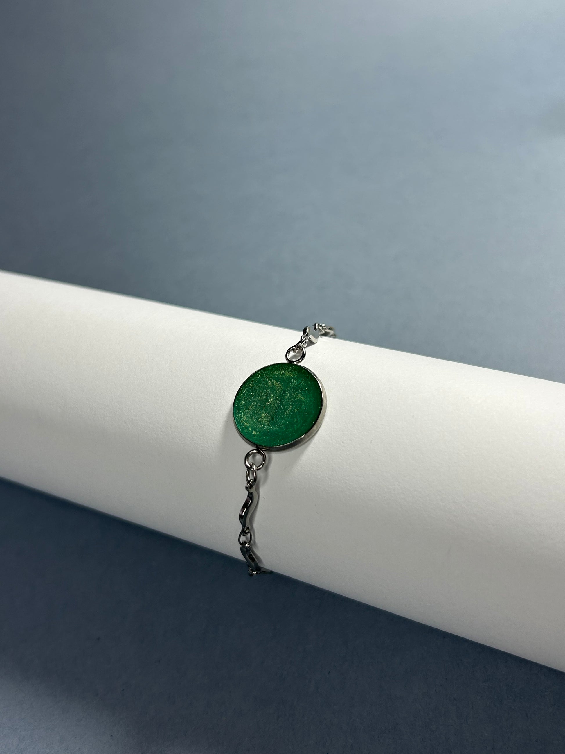 Pulseira ajustável em aço inoxidável, com pingente verde e brilhante